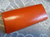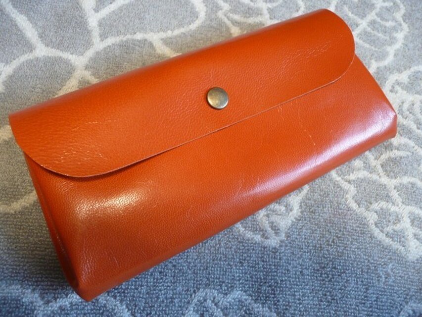 1枚革を折りたたんで金具留めにした小さなポーチです。
