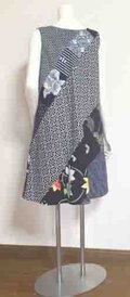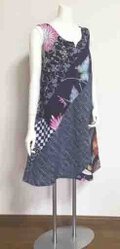色々な浴衣地をパッチワークし、斜めに配置たAラインのワンピース。