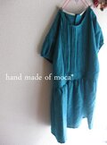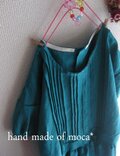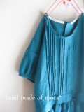 《完売》W50フレンチリネンパフ袖ピンタックワンピース★ブルーグリーン