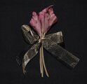 シックな色合いのカラー3輪をオーガンジーのリボンで結え、大人のコサージュに仕立てました。