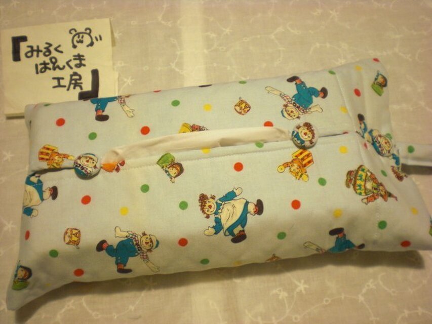 思った通りの温かい作品で、届いてすぐからリビングの人気者になって活躍していますよ! ちょっと気になるのがティッシュ取り出し口のボタンが片方すぐはずれてしまい、そのたびにつけているので、もっときつめにはまるよう直してほしいと思いました。あと、お手入れのお洗濯方法も詳しく教えて頂けると嬉しいです。