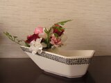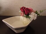 ダイヤモンドのようなフォルムが印象的なトレイに、ピンクやチェリーレッドの可愛らしいローズが咲いています(*^。^*)