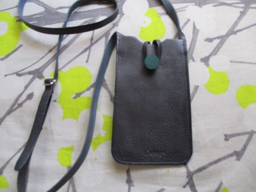 首掛けできるスマホケースです。しっかりしつつも柔らかな革で