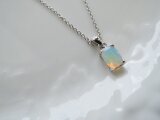 最上級宝石質プレシャスオパール(レクタングルファセットカット AAA以上 エチオピア産:色合い・・・クリア ライトイエロー:遊色効果多め SV925製フレーム:刻印あり)、チェーンネックレス(3種類より選択:小豆チェーン:SV 925製)、アジャスター(アジャスター用チェーン 幅約2.5㎜、シルバーフィルドワイヤー使用、対応サイズ約5㎝:プレシャスオパールドロップカット付き)。
