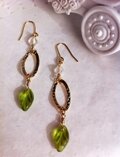 グリーンのリーフモチーフのビーズを印象的にあしらったピアスです。