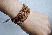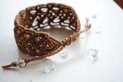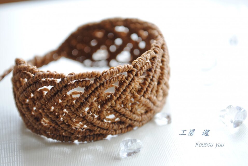 ハート模様の、幅広で印象的なマクラメ編みブレスレットです。