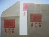 押した後切手を貼って下さい。記念切手等の大きいサイズや、普通サイズが2枚貼れます。