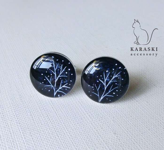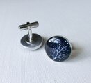手描きの絵を樹脂で閉じ込めたカフスです。