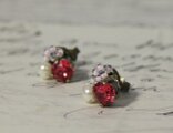 ヴィンテージスワロフスキー ビジューパールピアス ピンク