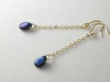 チェコガラスのロングピアス メタリックネイビー