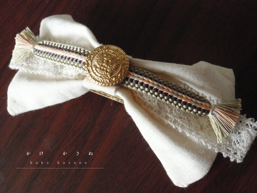 【展示品】矢羽根源氏:金ボタンのリボンバレッタ