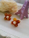 鼈甲に似たオレンジカラーが落ち着いた雰囲気もあるお花イヤリングです(*^^*)