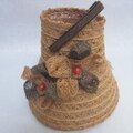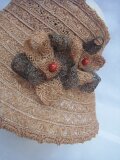 飾りのお花は、栗で染めた後の色止めと発色を良くするための媒染の違いで黒っぽい色と茶色の二色になります。
