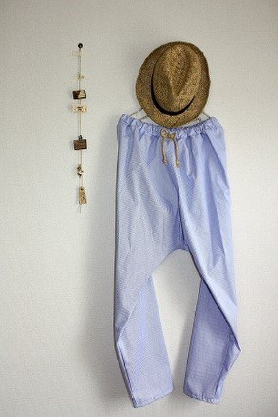サラリとした、透け感の少ないコットン100%でお作りしたサルエルパンツです。