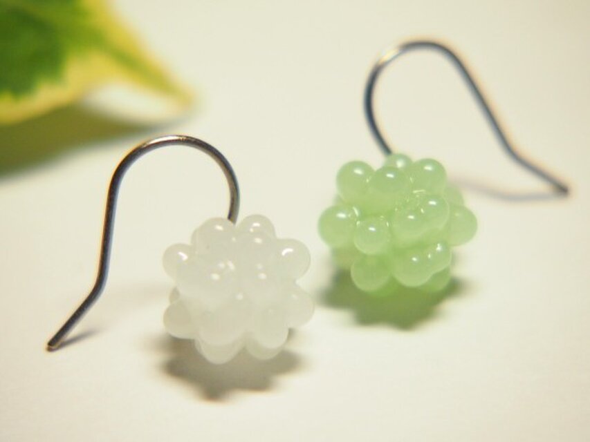 白とミントグリーン 1粒ずつで さりげなく個性的なピアスです