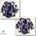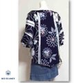 2種類の古着の浴衣生地で作った、七分袖パフリーブのプルオーバー。1点物です。