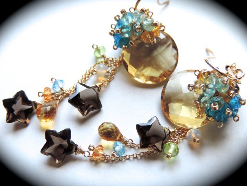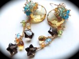 ~ K14GFライトシトリン&スター&マルチカラーストーンピアス~