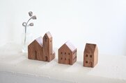 ヨーロッパの民家をモチーフに、無垢の木から削りだして小さな木の家を作りました。