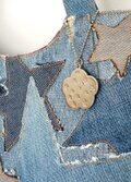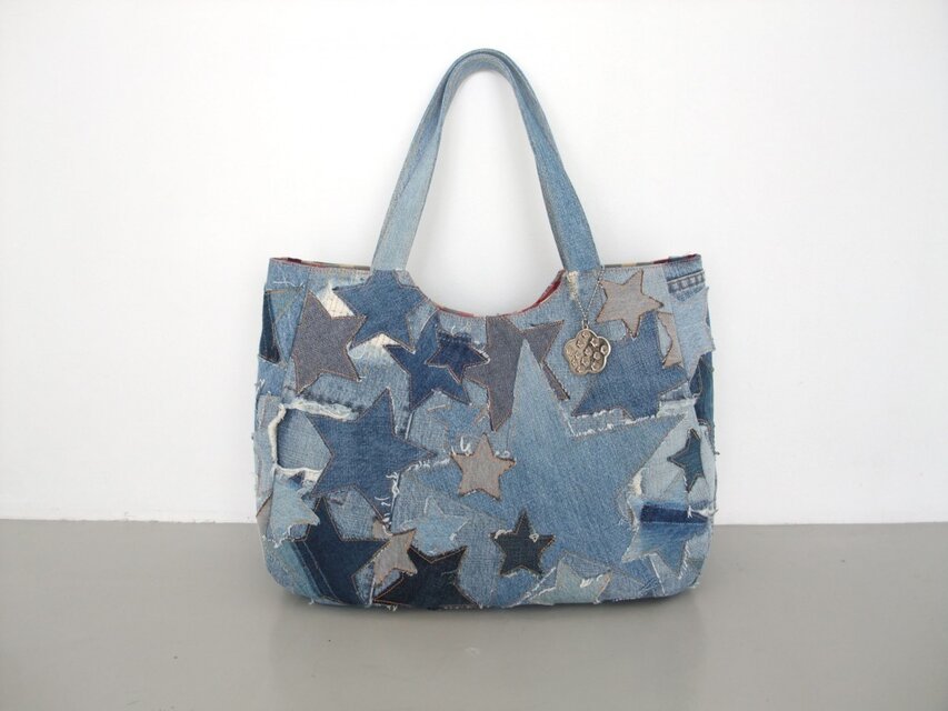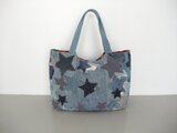 ベースの材料はユーズドのデニム さまざまなデニムから切り取った星をたくさんアップリケしたトートバックです。