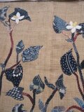 昔の麻の布に、昔の藍の型染でドクダミを刺してみました。