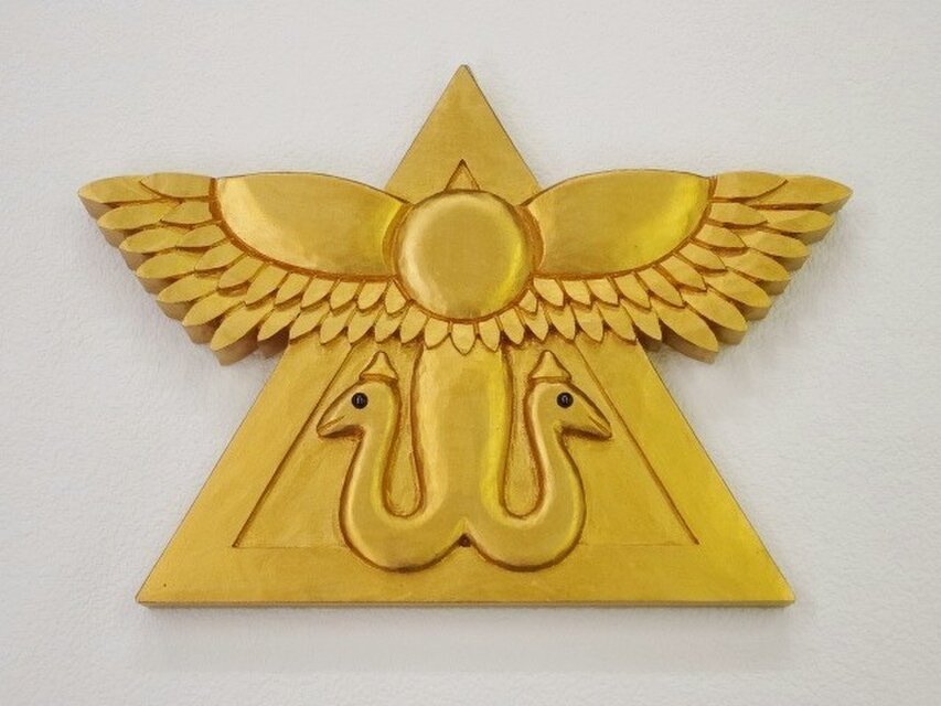 真理の探究を、聖なる羽根と二匹の蛇でデザイン