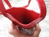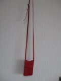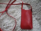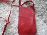 赤の革はアクセントになってかわいいです。ポシェット代わりにどうぞ。