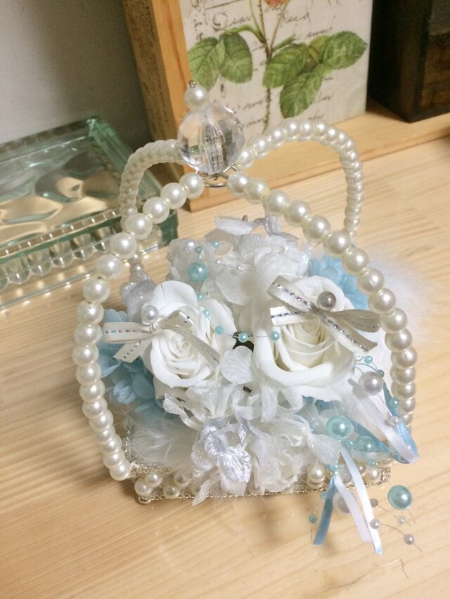 ワイヤーパールのリングピロー【プリザーブドフラワー】