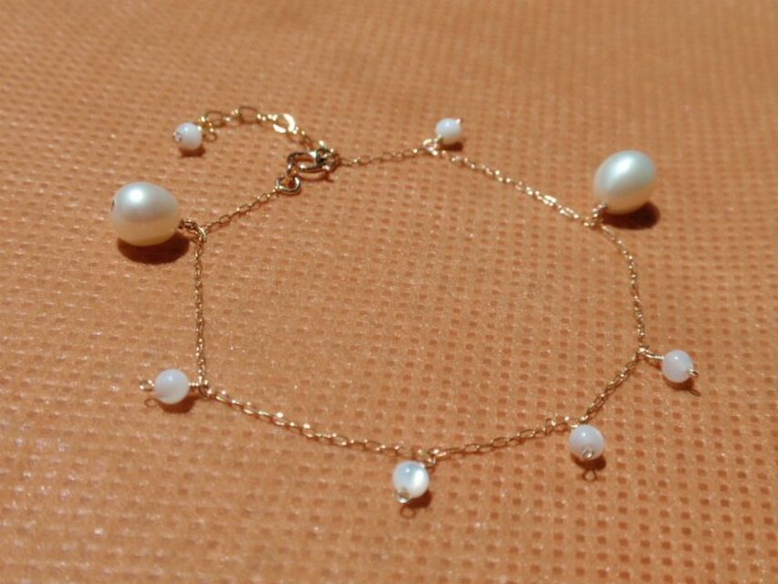 大粒のパールと、小粒のマザーオブパールで作成したブレスレットです。