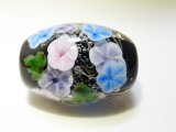 黒の地に泡を入れ、ガラスで作った3色の朝顔を咲かせました。