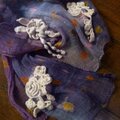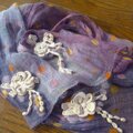 コットン糸で編んだ花のモチーフを表裏に縫い付け
