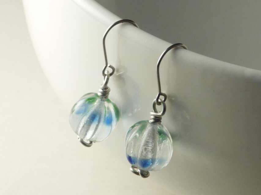 チェコ・メロンビーズのピアス 帰ってきた江戸風鈴 青緑