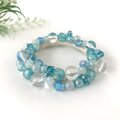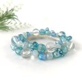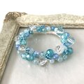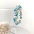 #クロッシェ #シュシュ #透明感 #ヘアゴム #キラキラ #水色 #ペールブルー #パステルカラー #クリア #春 #夏 #ボリューム #かぎ針編み #パール #シャーベットカラー #まとめ髪 #再販 #ブレスレット #2way #空色