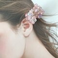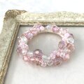 ライト ピンク の クロッシェ シュシュ ペール パステルカラー かぎ針編み ビジュー ビーズ ヘアゴム まとめ髪
