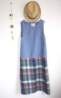 コットン×ワッシャーダンガリーの切り替えワンピースです。