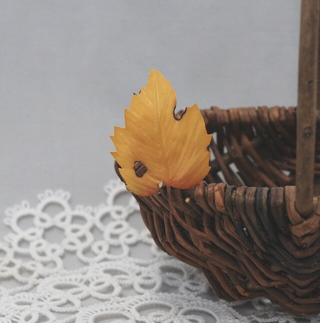 赤く色づいた野ぶどうの葉をアートフラワーで作成してみました。