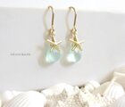 カルセドニーとスターフィッシュのピアスになります。 南国の海を思わせる淡く爽やかなミントブルーカラーで、暑い日差しの中でもとても涼しげな印象にしてくれるお色です。 普段使いはもちろん、水着や浴衣にも合わせやすいと思います。