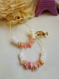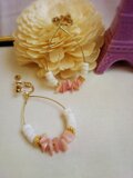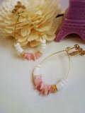 こちらマザーオブパールという天然石、シェル、トルコメタルパーツを使用いたしております(^-^)