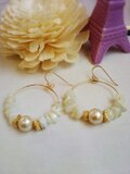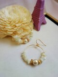 こちら天然石マザーオブパールとコットンパールのイヤリングでございます。