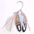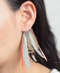 アクアグリーン、ナチュラル、サーモンピンクの羽根を組み合わせたイヤーカフです。