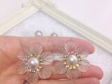 透け感のある花びら6枚の大振りなイヤリング。