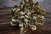 ピッグスエードを使用し、シンプルな花の形のカブトピンに仕上げました。