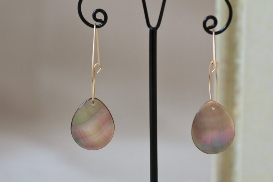 変形フープにシェルドロップをプラスしたシンプルなピアスです。