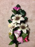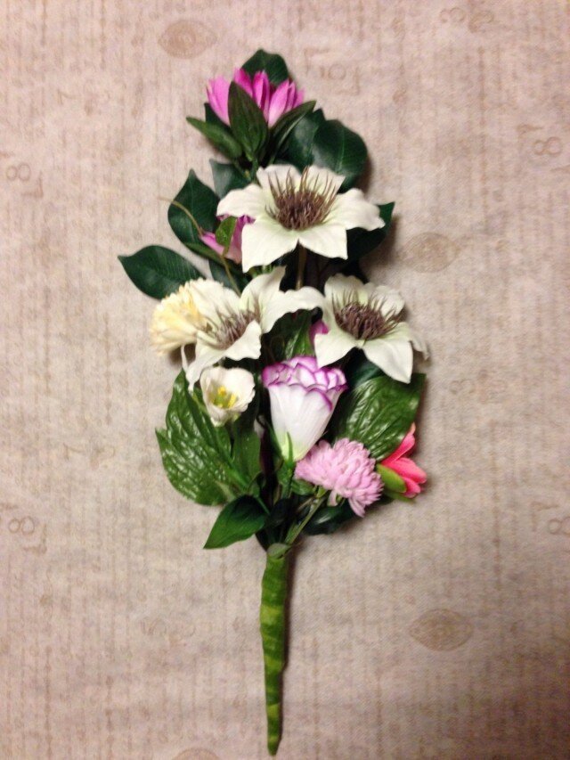 こちらはピンク系のアートフラワーを使い制作しましたお供え花です。