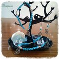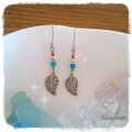 空を思わせる明るい水色のターコイズと、シルバーリーフが揺れるピアスです。