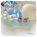 コットンパールと6色キュービックジルコニアピアス ホムポム