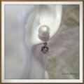 存在感のある1cmのコットンパールの耳たぶの後ろにカラフルなキュービックジルコニアがとってもチャーミング。