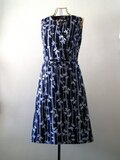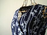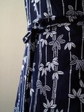 紺色に白の笹柄の浴衣からカシュクールワンピースを作りました。