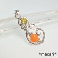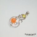小粒のイエローカラーのスフェーンと鮮やかなオレンジ色のリチオフィライトを組み合わせた