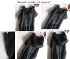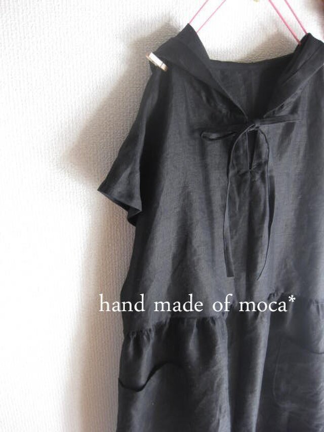 【受注製作/4.20再入荷】W45半袖前ヒモリボンフード付きシンプルリネンワンピース★黒