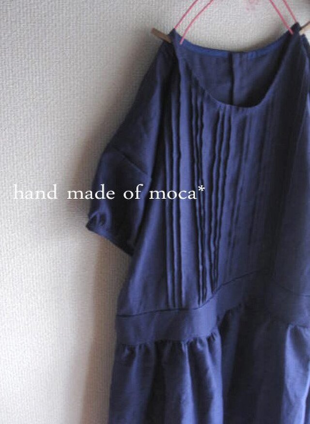 《完売》W50パフスリーブ前ピンタックリネンワンピース★桔梗